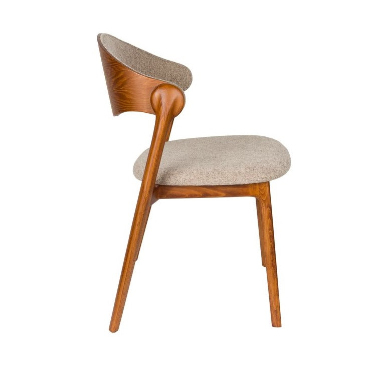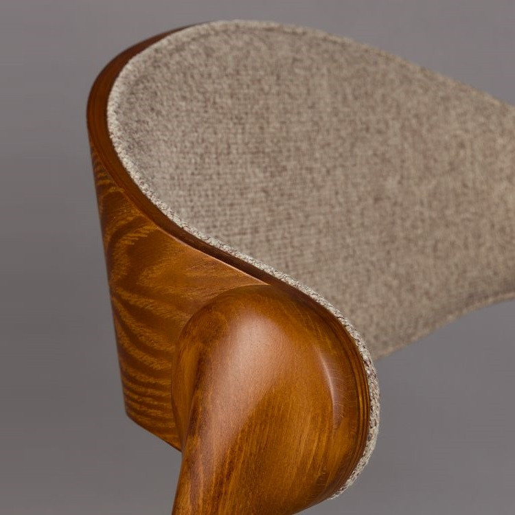 Create a warm, inviting atmosphere at home with furniture full of character, like the Dutchbone Babington Diningchair. This design instantly recalls the quality craftsmanship of a 1950s interior. The wooden frame in a walnut finish is designed so that the base flows seamlessly into the backrest – true artisanal work. The natural look of the wood contrasts beautifully with the light fabric of the seat and backrest. Plus, the soft seat cushion offers exceptional comfort, making it perfect for a cosy evening with loved ones.