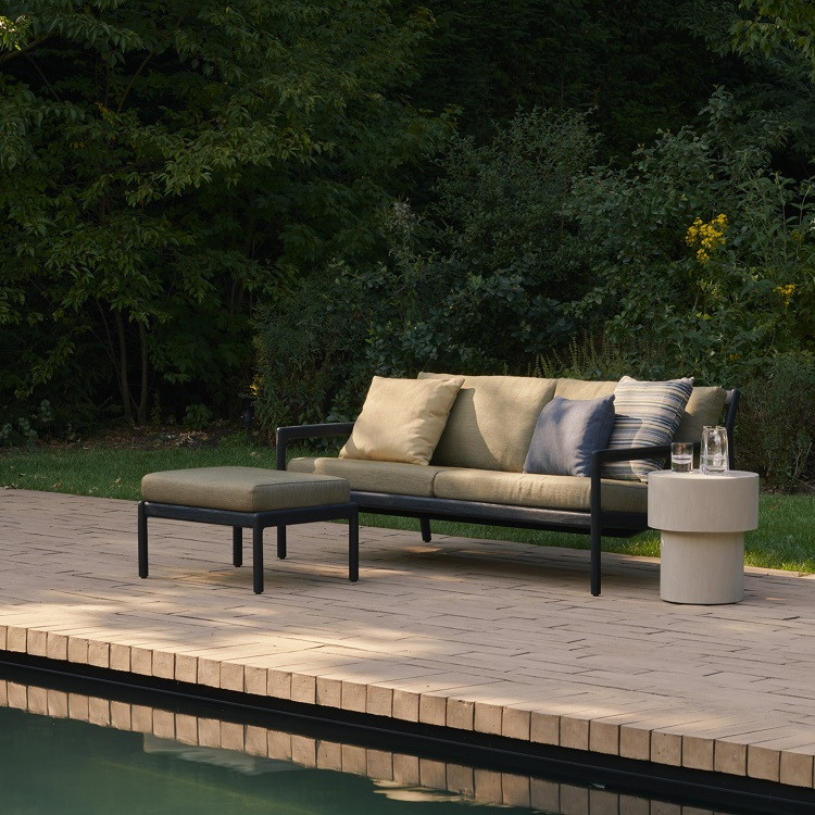 Jack teak outdoor sofa with premium Natural cushion set. Alluring from every angle, luxuriant shapes and curves form the basis of the Jack collection. The Jack offers clean, classic lines with a modern touch. Every detail has been meticulously crafted to ensure comfort and elegance while enjoying the outdoors.