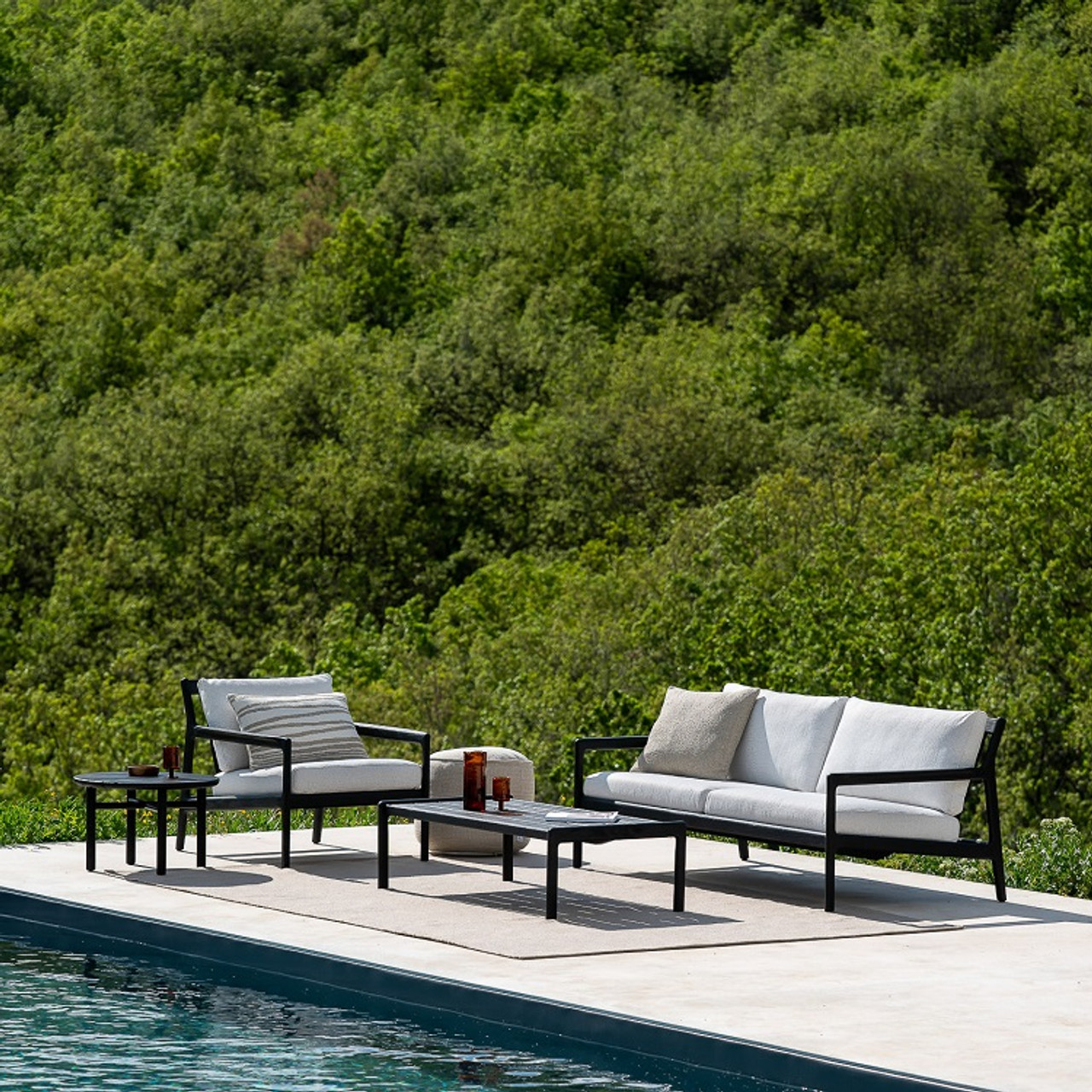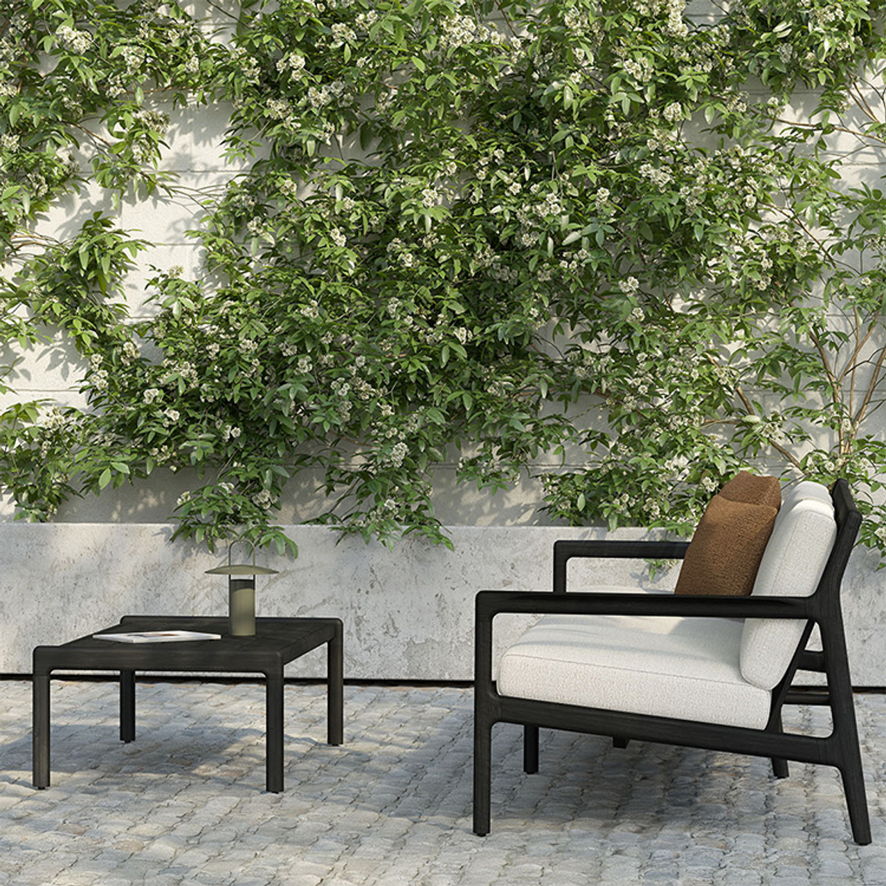Jack teak outdoor 3 seat sofa with premium Off White cushion set. Alluring from every angle, luxuriant shapes and curves form the basis of the Jack collection. The Jack offers clean, classic lines with a modern touch. Every detail has been meticulously crafted to ensure comfort and elegance while enjoying the outdoors.