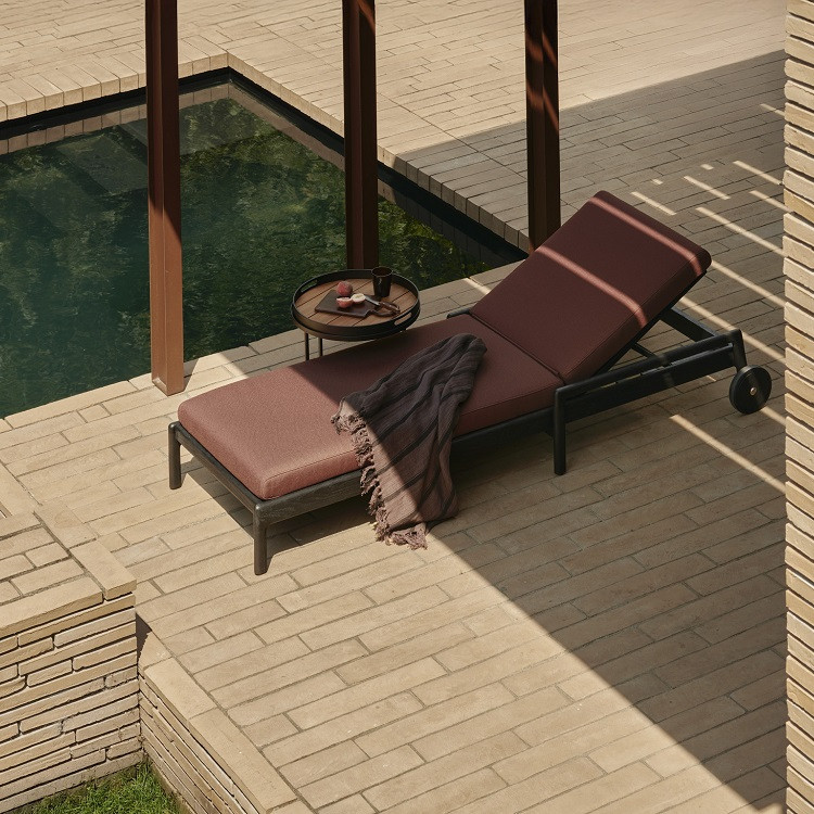 Enhance your outdoor relaxation with the Ethnicraft Black Jack Adjustable Lounger, where luxurious comfort meets timeless design.