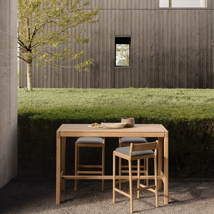 Elevate your outdoor summer experience with the Ethnicraft Jack Teak Outdoor Bar Chair, combining timeless craftsmanship with nature-inspired design.