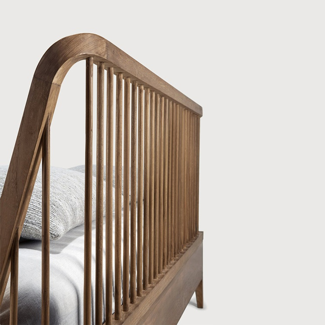 The iconic Spindle collection, inspired by the traditional spinning wheel, incorporates perfectly aligned spokes into the headboard. Slightly tapered legs and rounded edges add a soft, sensual quality to this beautiful bedroom piece. Made from reclaimed sustainable teak, each hand-finished piece tells its own story through its unique wood grain and character.