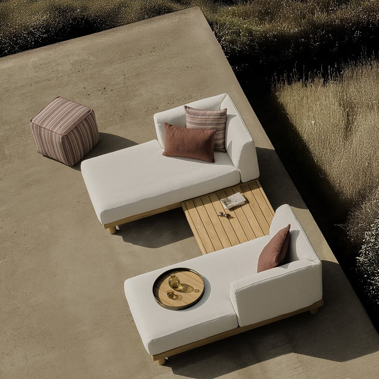 Combining elegance and sleek lines in a relaxed silhouette, the Monocle feels refined, inviting and grounded. Its soft cushions bring an indoor level of comfort to outdoor living, while the solid wooden base anchors the piece with warmth and balance. Choose from pre-configured options or tailor your own setup to create a sofa as unique as your space.