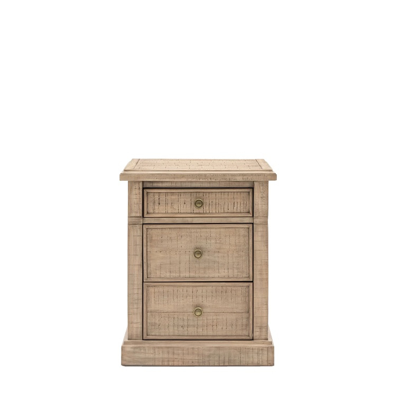 Gallery Direct Vancouver Natural Oak 3 Drawer 3 Drawer Bedside 520x450x650 blends enduring design with everyday practicality from Gallery Direct.