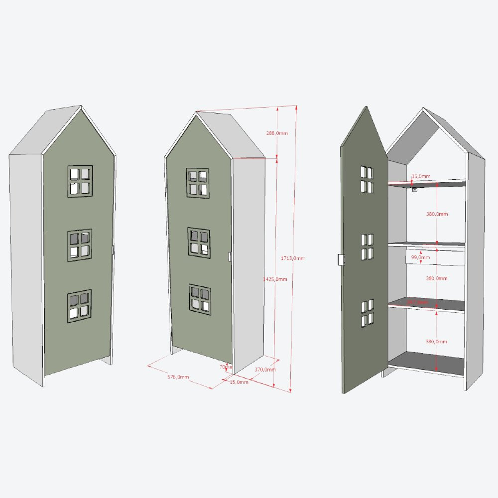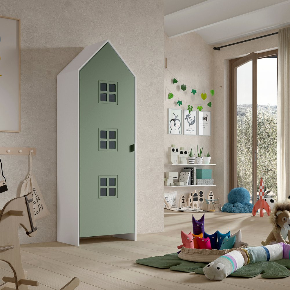 Vipack Casami Beach Hut Green Slim Wardrobe is a cosy wardrobe designed for modern kids' bedrooms.