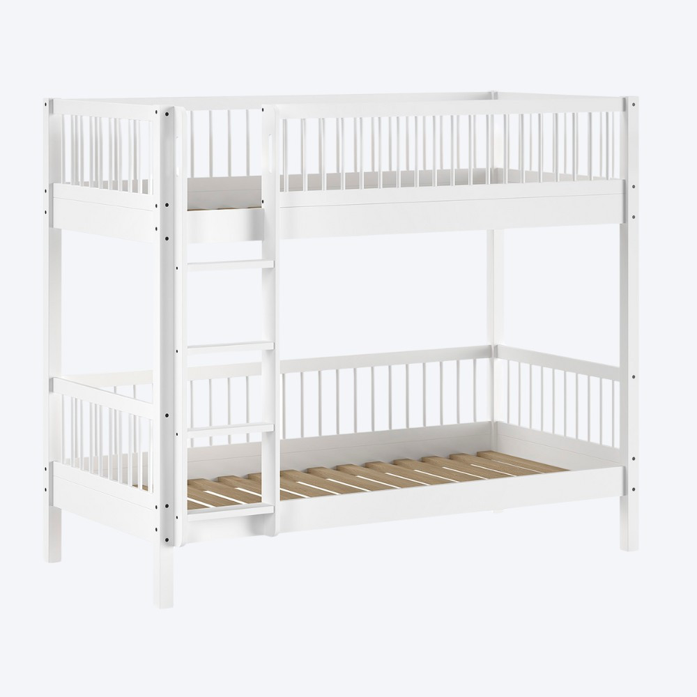 Vipack Forrest Lacquered White Beech Wood Spindle Bunk Bed 90x200cm is a modern rustic bunk bed designed for stylish, hard-working kids' bedrooms, finished in lacquered, white, beech.