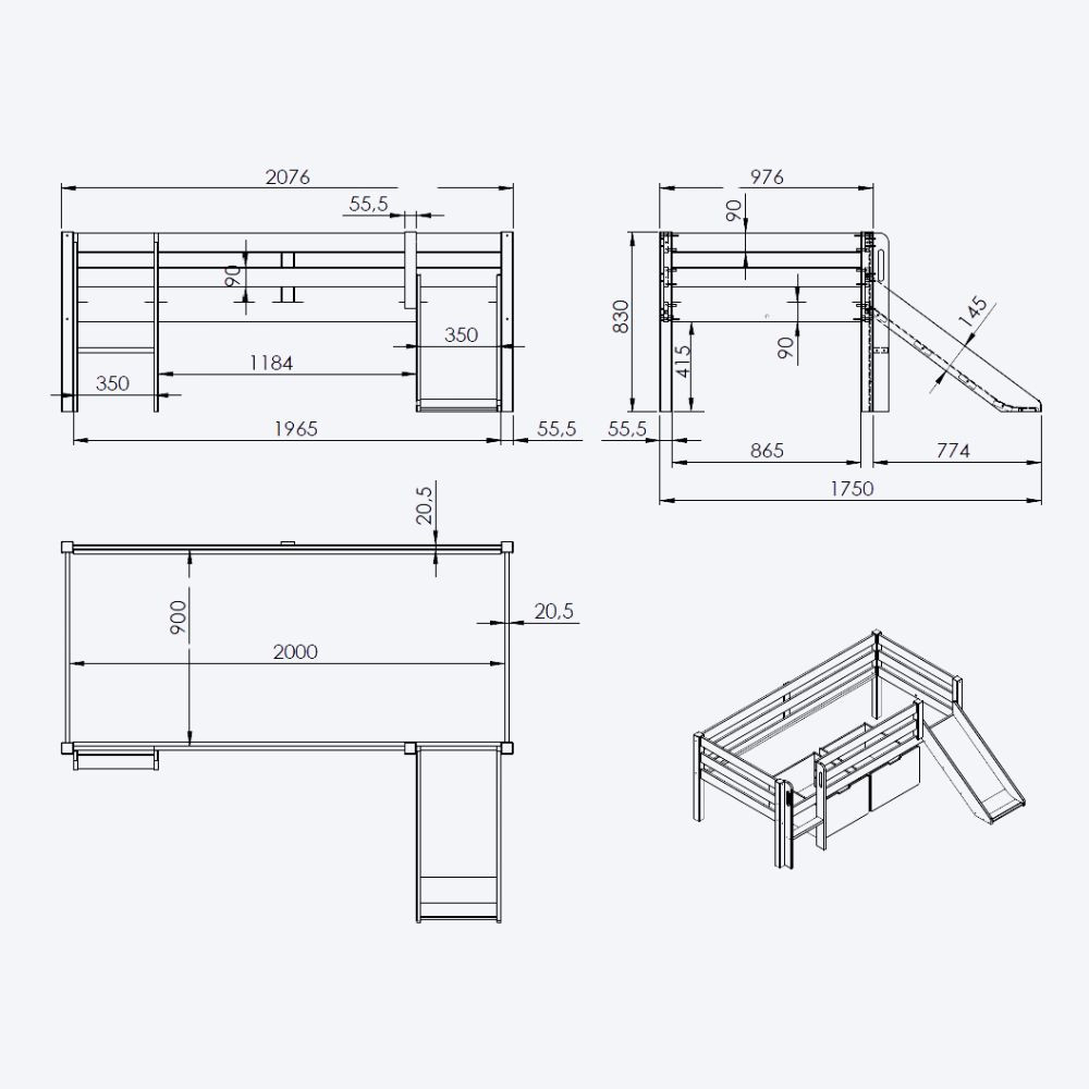 Vipack Pino Lacquered White Scandinavian Pine Mid Sleeper Bed 90x200cm is a mid sleeper bed designed for stylish, hard-working kids' bedrooms, finished in lacquered, white, scandinavian pine.